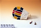 A) Linfäste, rockblad, av björk. Målat i grönt, svart och rött. Rikt genombrutet, med hjärta, krona, sexekriga hjul samt initialerna: OMS. Kraftigt avsmalnande nedåt. Med toppkam.