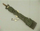 Gryta, av koppar. Rund, och försedd med två öglor fastnitade på utsidan, med tillhöranbygel. Överkanten utvikt ett par centim. (Ur lappkatalogen).