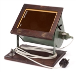 Mörkrumslampa (A) och låda med tre mörkrumsfilter (B).