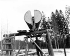Tapetprov från Smedsböle 1:6. Uppmätning av äldre boningshus maj 1987. Huset rivet sommaren 1987. Äldre boningshus (hus 1). Kök (rum 4). Tapetlager 5. Maj 1987/Lisbet Cadell-Åström.