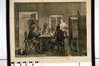 Prov av täcke i plattväv från Junsele socken, Ångermanland. Varp och inslag i naturvitt bomullsgarn och inslag i brunt och lila ullgarn. Rutmönstrade bårder, varannan i brunt och varannan i lila löper på en naturvit bottenväv. Fållade kanter finns i båda kortsidorna. Provet är trasigt i ena hörnet och har fläckar och skadedjursangrepp.