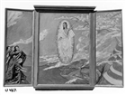 Två vävprov i tuskaft med mönster i munkabälte. Dubbel varp i tunt beigt bomullsgarn och botteninslag i beigt, brunrött, blått och ljusblått entrådigt ullgarn. Mönsterinslag i blått och rött entrådigt ullgarn. Mönstret består av rödblå bårder på en beige botten. I bårderna ingår både färgade tuskaftsränder och ränder med munkabälte. För uppgifter om de enskilda proven se nedan.Inv.nr 4565:1Provets längd är 240 mm och dess bredd är 305 mm. Det har en stadkant och det är kastat för hand längs med övriga tre sidor. I ena hörnet är fäst en liten papperslapp med Ångermanlands hemslöjd Sollefteå emblem och texten:"Ångermanlands Hemslöjdsför SOLLEFTEÅ - Tel. 260 Pris 8.50 Kr mtr Storlek 57 cm brett Meter antal N:r 110 Lit I"Inv.nr 4565:2Provets längd är 185 mm och dess bredd är 170 mm. Det saknar stadkant och är ofållat.