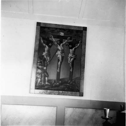 Bildnummer: Fo-A1114 Mapp: 403 Ur Länsmuseet Västernorrlands bildarkiv Motivord: Kapell, Kyrkoinventarie, Oljemålning Fotograf: Bo Hellman Plats: Skappsmalen Grundsunda Örnsköldsvik Ångermanland Fotot är daterat till 1951Skeppsmalens kapell.