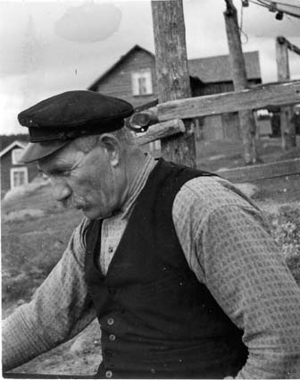 Fritjof Lindqvists pappa. Leonard Lundgrens stuga i bakgrunden.