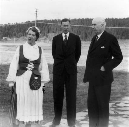 Bildnummer: Fo-A1567 Mapp: 409 Ur Länsmuseet Västernorrlands bildarkiv Motivord: Kvinna, Man Fotograf: Bo Hellman Plats: Nätra Örnsköldsvik Ångermanland Fru Ingeborg Hedberg, Dr B. Berthelssen, riksantikvarie S. Curman.