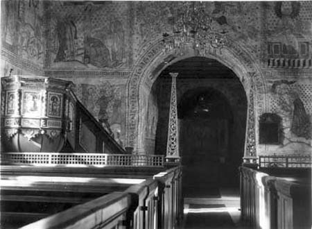 Invändigt fick kyrkan putsade väggar, trägolv och ett plant trätak. Väggar och tak blev frikostigt utsmyckade med kalkmålningar av konstnären Gunnar Torhamn och konservator Oscar Svensson.