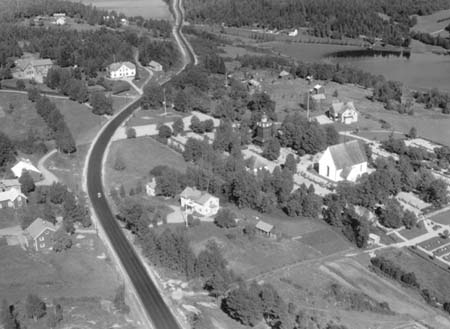 Bildnummer: Fo-BFE1958_390 Ur Länsmuseet Västernorrlands bildarkiv Motivord: Kyrka, Landsbygdsbebyggelse Plats: Grundsunda Örnsköldsvik Ångermanland Fotot är daterat till 1959Flygfoto över Grundsundavallen