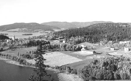 Bildnummer: Fo-BFN_381 Ur Länsmuseet Västernorrlands bildarkiv Motivord: Hav, Kyrka, Landsbygdsbebyggelse Plats: Nordingrå Kramfors Ångermanland Fotot är daterat till 1954Vallen Nordingrå.