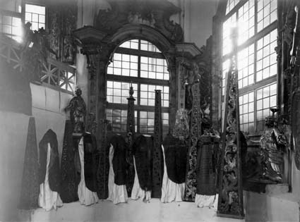 Bildnummer: Fo-U3564 Mapp: 579 Ur Länsmuseet Västernorrlands bildarkiv Motivord: Kyrkointeriör, Kyrkoutställning, Skrud Fotograf: Arvid Holmstedt Plats: Härnösand Ångermanland Fotot är daterat till 1912Utställningen av äldre kyrklig konst i Härnösand 1912.