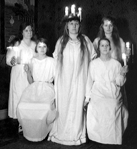 Hur kommer det sig egentligen att vi i Sverige firar ett sicilianskt helgons martyrdöd? Det är en fråga som inte är helt lätt att svara på. Enligt legenden var Lucia en ung flicka som år 304 fick lida martyrdöden för sin kristna tro och som straff för att hon använt sin hemgift för att ge mat till de fattiga. I sydöstra Europa finns därför en ålderdomlig sed att till Lucia delar ut bröd. Lucialegenden är känd i Norden sedan medeltiden. Före kalenderreformen 1753 inföll midvintersolståndet den 13 december. Därför betraktades lucianatten länge som årets längsta natt. Enligt folktron var denna natt farlig eftersom de övernaturliga makterna var starka och det gällde att hålla sig vaken. Dessutom tog en av de fyra årsfastorna sin början. Och fastan inleds alltid med fest, mat och dryck. Dessutom började latinskolornas jullov denna dag och skolgossarna brukade uppvakta sina lärare med sång. Lucia med ljus i håret som sjungande kommer med kaffebrickan tidigt om morgonen är en sed som har uppstått på herrgårdarna västra Sverige. Första gången hon omtalas är 1764. Från landskapen runt Vänern kom denna form av luciafirande till universitetsstäderna. Genom organisationer som Frälsningsarmén, IOGT, husmoders- och lottaföreningar spred sig luciafirandet vidare ut över landet och kom att bli en slags manifestation för hembygden och för svenskheten. Än mer offentligt blev luciafirandet 1927 då Stockholms Dagblad tog initiativ till luciatåg längs stadens gator, ett arrangemang som föregåtts av en tävlan mellan olika luciakandidater. Så här kunde luciafirandet gå till på Alnön