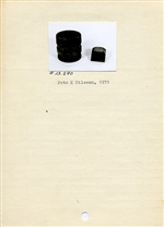 Pumphjärta med lös klaff. Till vattenpump. Svarvat av björk. Cylindriskt med på utsidan två försänkta partier, varav det ena koniskt. Innandömet består av tre parallella, genomgående hål, varav ett stort i centrum, närmast rektangulärt med rundade kortändar samt vid sidorna två små hål för fästskruvar (?). På utsidan är skrivet med blyerts: "3 kr ag3-". Klaffens grundform är rektangulär, men genom ett flertal avfasningar är den mångsidig. Klaffens längd 6,9 cm. Klaffens bredd 4,7 cm. Hjärtat och klaffen är märkta M10628a resp. b.