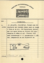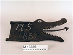 Vindflöjel, av järnplåt. Svartmålad. Formad som ett djurhuvud med tandade käkar samt en tunga i form av en pil. Två fastnitade järntenar vid bakre delen av flöjeln för upphängning å stång el dyl. Årtalet 1832 samt bokstäverna P L S genombrutna i plåten. Längden= 58 cm och höjden= 26 cm.
