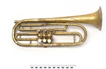 Ess-kornett. Blåsinstrument av mässing. Försedd med tre st. ventiler med knappar. Munstycket saknas. Fabrikationsmärke Ahlberg & Ohlsson. L. = 42 cm och trattöppningens diam. = 11,5 cm.