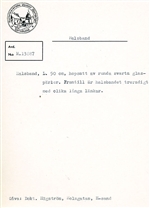 Halsband, hopsatt av runda, svarta glaspärlor. Framtill är halsbandet treradigt, med olika långa länkar. Gåva: doktorinnan Högström, Holmgatan, Härnösand. (Ur lappkatalogen).