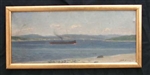 Tavla. Olja på duk, 19,5 x 41 cm. "Utsikt mot Hernösand från Boviken på Lungön. Början av 1890-talet." (Enl. påskrift på baksidan.) Sign. A. Bäckman.