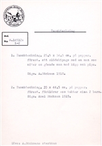 1. Tuschteckning, 25,5 x 34,5 cm, på papper. föreställande ett slädekipage med en man som möter en gående man med käpp och pipa. Sign. A. Bäckman 1918.