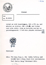 Slädnät, virkat av vitt bomullsgarn, 315 x 270 cm, med mönster av cirklar, 12 x 10 st., med tofsar runt alla sidor, utom en kortsida, som har en genomdragssnodd. I två hörn påsydda märkband: 4 MB. Gåva: fröken Anna Berg och fru Sofia Sjöberg, samt brodern Carl J. Berg, (barn tilll sadelmakaren Carl Martin Berg), Härnösand 1961. (Ur lappkatalogen).