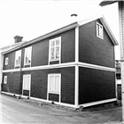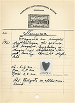 Stenyxa. Fragment av simpel skafthålsyxa. Av gråviolett bergart. Eggdelen avslagen vid skafthålet. Slipad, kantig. Koniskt skafthål. (Ur lappkatalogen).