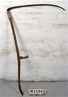 Barksax, av järn, bestående av 9 st. järn, med 6-7 uppåtriktade taggar och 8 st. med nedåtriktade tänder, höjd 1,5 cm. Järnen är fästa i varandra på ena kortsidan. Barksaxen manövreras med hjälp av två ögleformade handtag, ett på vardera över- och underdelen. Barksaxen vilar på 4 st. 15 cm höga ben, vars fotparti är tillplattat, längd 5 cm. Anmärkning: tidigare inkommet föremål, som saknat inventarienummer.