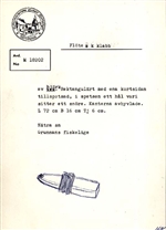 Flöte s.k. klabb, av björk. Rektangulärt med ena kortsidan tillspetsad, i spetsen ett hål vari sitter ett snöre. Kanterna avhyvlade. L 72 cm, B 16 cm, Tj 6 cm.