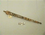 Linfäste, av björk. Pyramidiskt. Målat i grönt, gult, orange, violett och ljusgrått. Sju genombrutna partier, åtskilda av längre och kortare profilerade mellanleder. Rikt profilerat topparti. Det nedersta genombrutna partiet med runda öppningar, det översta med rundbågiga. Ornerat i tandsnitt och med inskurna hak. Märkt: E.