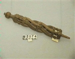 Linfäste, av björk. Svagt pyramidiskt. Omålat. Fyra genombrutna partier, det översta och nedersta med balusterformade ståndare, de två mittersta med s-formiga hörnståndare, ornerade med tandsnittsbårder i kilsnittsteknik. Toppartiet med klotformig knopp.