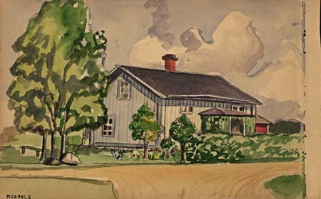 Bild 2. Ett bostadshus, akvarell. Bilden hör ihop med nästa bild.