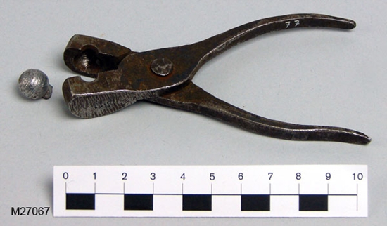 Kultång, rundkula, kal. 11 mm. Har ingått i Johannessons samling nr. 77. (Ur dokumentation av MJ 97-08-28).