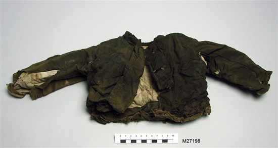 Jackan är ett trossbottenfynd och är skänkt tillsammans med fler klädesplagg och klädesrester, M27195 - M27199. Föremålen hittades i samband med att en bryggstuga i Västanå 1:19 Liden, Medelpad revs i början av 1970- talet.