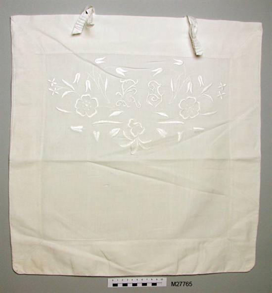 Örngott vävd och broderad av Karolina (Karin) Johansson (f. Jakobsson 5/12 1866 i Mo, Helgum sn.).
