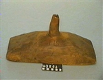 Mjölktratt, av barrträ. Urholkad ur ett stycke. Rektangulär "skål". Märkt: HLS. L. 46 cm. Br. 21 cm. H. 21 cm.