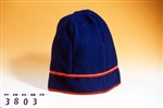 Lappmössa af blå filt i fem kilar. Nedikring kantad med rödt kläde och 5 cm uppåt en röd klädesremsa och tenntråd. Höjd 25 cm.