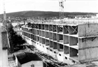 Tallrikar 2 st, av fajans, vit. Tryckt ornering i svart och grått: å kanten gotiserade arkitektur i trädlandskap, människor, blommor, bladornament i fördjupningen.