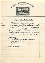 Ljusstake, av tenn. Fyrsidig, genombruten fot på kulor. Däröver runt, uppåt avsmalnande parti, som uppbär räfflad, konisk kolonn med nedtill räfflad ljuspipa. Stämplar saknas. Oläsliga stämplar.