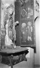 Rrokoko av furu, fanerat med lövträ (delvis ek.) Underdelen med två hel- och två halvlådor med mässingshandtag och nyckelskyltar (en del saknas). Svängda fötter. Överdeln med tvenne dörrar. Krönet brutet och svängt. Ovanför dörrarnas mittposrt halvcirkelformigt fält med inlagd 6-uddig stjärna. Dörrarna gå på tappar.