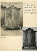 Skåpet har ägts av en hem.äg. Berlin, och har under flera generationer gått i Berlinska släkten. Kr. 250:- /enl baksidan på kortet/.