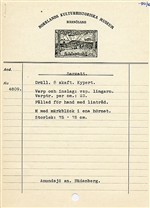 Enligt lappkatalogen: Servett, dräll, 8 skaft. Kypert. Varp och inslag: vsp. lingarn. Varptrådar per cm: 23. Fållad för hand med lintråd. Hellinne.