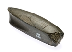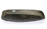Stenmejsel, av gråsvart bergart. Tjocknackig. Slipad. Ena bredsidan välvd, den andra plan. Djupt hålslipad. L. 12 cm. Br. 3,9 cm. Tjockl. 2,9 cm. (Ur lappkatalogen).