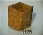 Låda av björk och barrträ. Nästan kubisk. För skjutlock, vilket saknas. Sidorna med rika skärningar, mittfälten med hjärtan omramade av geometriska motiv. I ena hörnet järnbeslag.