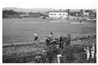 Stol. Allmogerokoko, Fredrik I-stil. Ryggen har genombruten balusterbricka och överstycke med skuret mussel- och bladornament. Främre delen av sargen har liknande skurna ornament. Lös sits, stoppad och klädd med grovt tyg av senare slag, mönstrat i grönt och svart. De böjda frambenen har skuren dekor av blad upptill och stiliserade lejontassar nertill. H-kryss. Brun färg på ryggen.