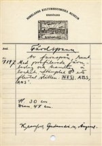 Färdspann, av furuspån, runt. Med profilerade järnbeslag och handtag å locket. Stämplat å ett flertal ställen: NES, ABS, ANS". H. 30 cm, Diam. 47 cm.