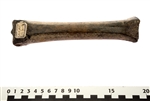 Islägg, av ben, troligen skenben från ett djur. På undersidan slipad och glättad. Slipad även framtill. L. 21 cm. Br. 4,5 cm. Tj. 2,5 cm. (Ur lappkatalogen).