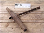 Timmerborr, spiralborr, av järn, hemsmidd. Tvärställt skaft, av björk, märkt: E. (Ur lappkatalogen).