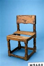 Stol av björk och barrträ. 1600-talstyp. (Ur liggaren).