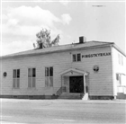 Möbeltygsprov i sålldräll. Dubbel varp i tunt rött bomullsgarn och dubbelt inslag i ullgarn med en lila tråd och en brunröd tråd i botten och smala helsvarta ränder. Rutor i omväxlande tuskaft och inslagsrips ca 15*20 mm stora. Provet saknar stadkant och är ofållat.