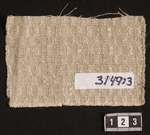 Fyra vävprover i sålldräll. Varp och inslag i lingarn i varierande färg, nyans och kvalitet.Inv.nr 3149:1Varp i halvblekt lingarn. Inslag i blekt och halvblekt lingarn i olika kvalitet. Provet har en stadkant och maskinsömmar i vitt längs alla sidor. Längd 95 mm, bred 95 mmInv.nr 3149:2Varp i halvblekt och inslag i beige lingarn. Provet har en stadkant och övriga sidor ofållade. Längd 30 mm, bredd 240 mmInv.nr 3149:3Varp i halvblekt lingarn. Inslag i blekt och halvblekt lingarn i olika kvalitet. Provet saknar stadkant och är ofållat. Längd 75 mm, bredd 115 mmInv.nr 3149:4Varp i halvblekt och inslag i ljusgrönt lingarn. Provet saknar stadkant och är ofållat.Längd 315 mm, bredd 175 mm
