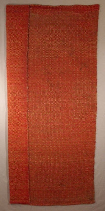Fälltäcke i motsatstrampad rosengång. Varp i kraftigt oblekt lingarn och inslag i rött ullgarn och dubbelt gult bomullsgarn. Mönstret motsvarar gåsögon. Täcket är helt men ganska blekt och smutsigt.Fälltäcket ingår i Åke Forsbergs samling som han skänkte till Textilarkivet Västernorrland 2001. Samlingen finns beskriven i häftet Fälltäcken från norra Ångermanland utgiven av Hembygdsföreningen i Örnsköldsvik. Täcket står somnr 25 i häftet och kommer från norra Ångermanland. Samlingen bestod av 43 stycken hela eller delar av fälltäcken. Två av täckena i häftet, nr 39 och nr 40, som kommer från Åke Forsbergs barndomshem i Östansjö, Mo socken, ingår inte i donationen till Textilarkivet.