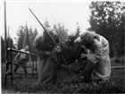 Vävprov i kypert och spetskypert. Varp i halvblekt lingarn och inslag i brunt, gult, rödbrunt och naturvitt ullgarn. Det gula och röda inslagsgarnet är vävt i spetskypert, övriga partier vävda i kypert.Väven har en 60 mm lång frans av varptrådar.