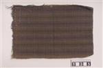 Tre möbeltygsprov i oliksidig kypert. Varp i tunt bomullsgarn och inslag i blått, mörkblått, grönt och lila entrådigt ullgarn. Mönstret består av smala ränder i mörkblått, blått och grönt som tonar in i varandra. I mitten på ungefär hälften av de mörkblå ränderna är det ett lila inslag. För uppgifter om varpfärg och storlek för de enskilda proven se nedan.Inv.nr 4635:1Brun varp. Provets längd är 140 mm och dess bredd är 210 mm. Det har en stadkant och det är sytt raksöm längs med övriga sidor.Inv.nr 4635:2Blå varp. Provets längd är 145 mm och dess bredd är 215 mm. Det saknar stadkant och det är sytt raksöm längs med två sidor.Inv.nr 4635:3Röd varp. Provets längd är 145 mm och dess bredd är 215 mm. Det saknar stadkant och det är sytt raksöm längs med två sidor.