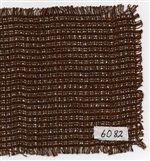 Gardinprov i myggtjäll och tuskaft, glesväv.Varp i ljust och mörkt brunt och tunt svart bomullsgarn. Inslag i mörkt brunt bomullsgarn. Varp med dubbla svarta tunna trådar och inslag med en brun tråd mellan myggtjällsränder i bruna nyanser. Provet har en stadkant och är ofållat.Enligt äldre anteckning har vävprovet ingått i en nummerserie och försetts med inventarienummer 6082 i samband med borttagande från pappersark: "6006 - 6156 innefattar nr 1 - 159 ... Blad finns kvar ... 77/6082". Inv.nr 6082 torde tidigare haft nr 77.